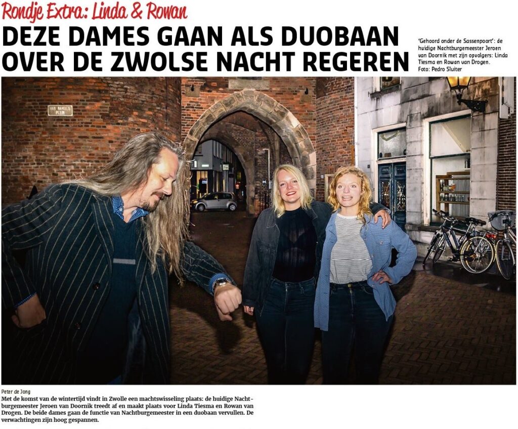 Na acht jaar droeg Jeroen van Doornik het nachtburgemeesterschap eind december 2022 over. De functie werd voortgezet als duofunctie, los van de PVC, ingevuld door Linda Tiesma en Rowan van Drogen. Deze nieuwe vorm sloot aan bij de ontwikkeling van het nachtburgemeesterschap als meervoudige en inclusieve rol.