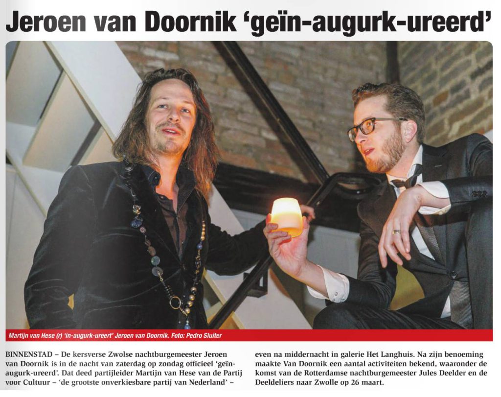 De Partij voor Cultuur is de grondlegger van het nachtburgemeesterschap in Zwolle.